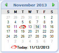 Clicking on a date displays all the reservations for that date on the reservation grid. Today’s date will be circled in red. The selected date (if different from today’s date) will be highlighted in gray.