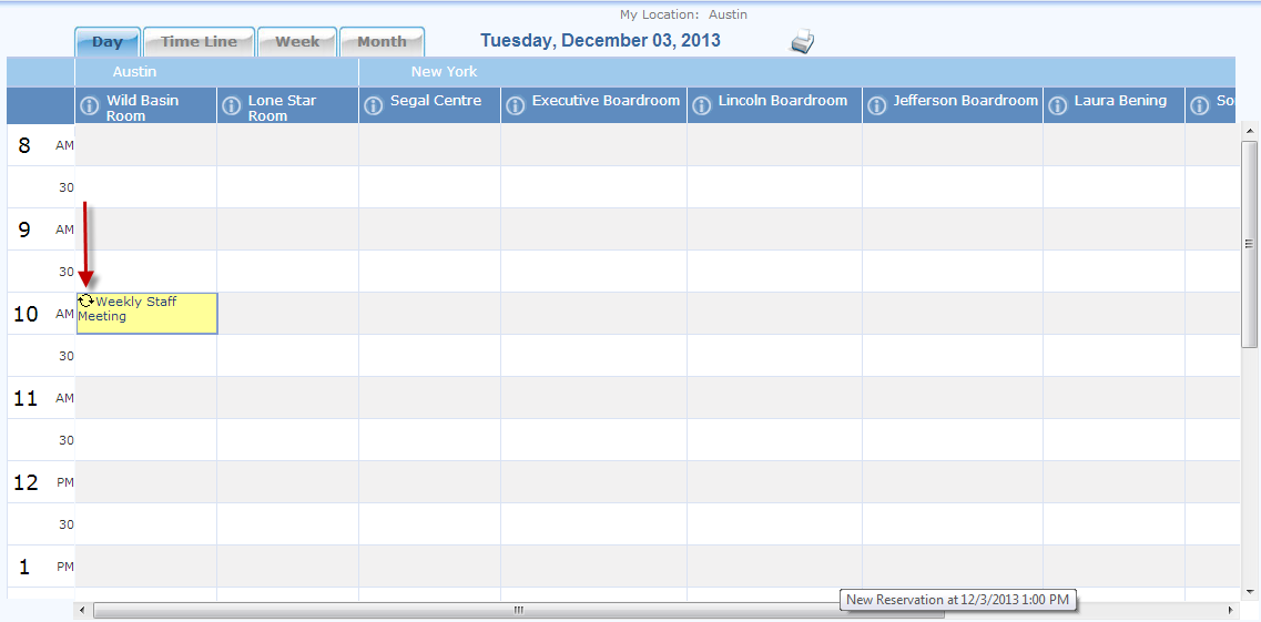 You are returned to the Reservation Details form and the selected resource has been assigned. All available tabs now display. Complete all details and add attendees and services as needed. Save and Close or Save and Invite to complete the reservation. You will return to the Reservation Grid where the recurring reservation will display. Recurring reservations are designated on the Grid with the recurrence symbol.